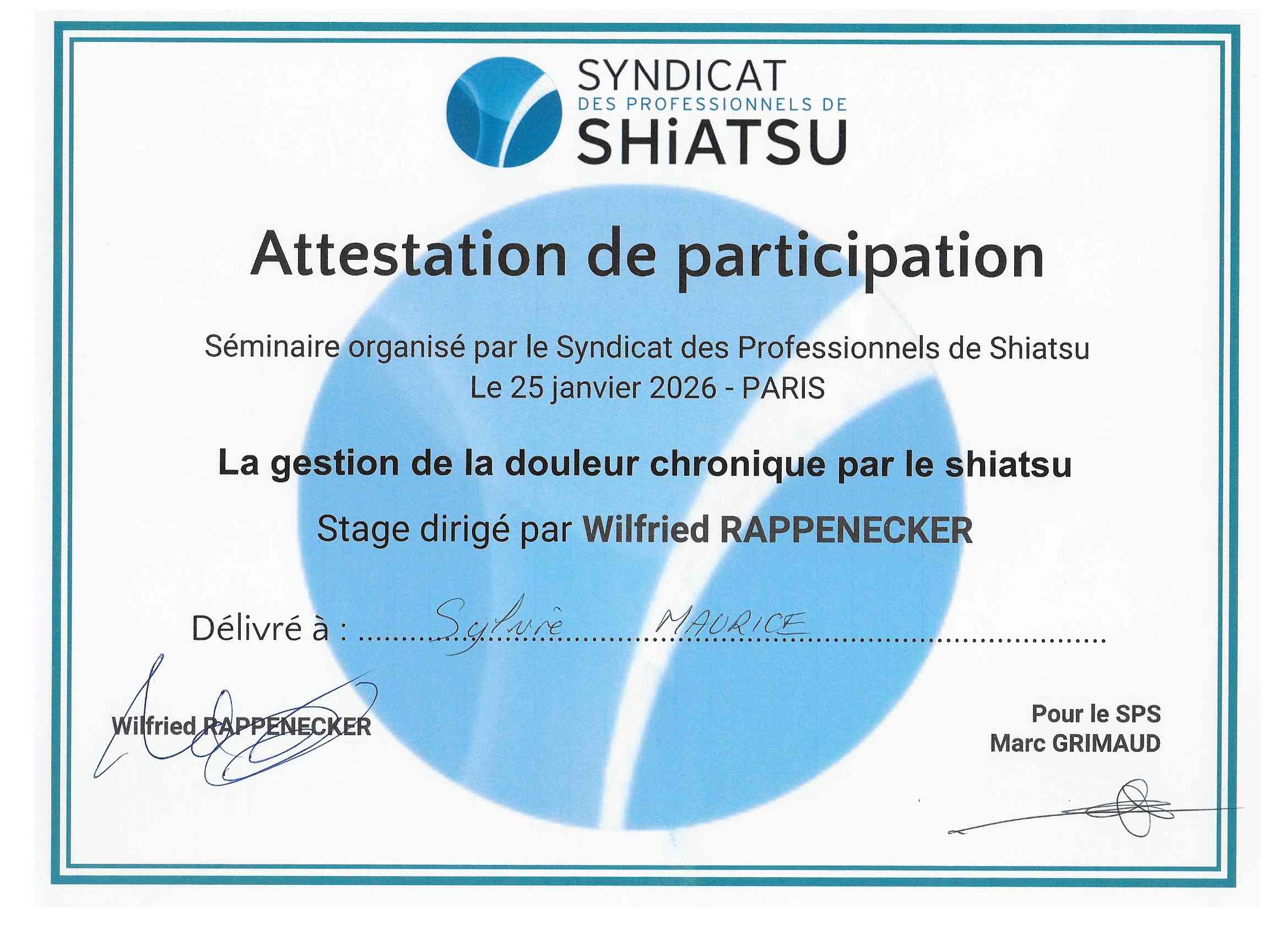 Titres en Shiatsu (voir la rubrique "compétences" pour les autres formations) : ___________________ Titre de spécialiste en Shiatsu cliquez sur la vignette _____________________ Titre d'enseignant en Shiatsu cliquez sur la vignette _____________________ La gestion de la douleur chronique par le Shiatsu cliquez sur la vignette