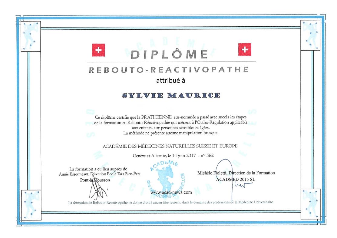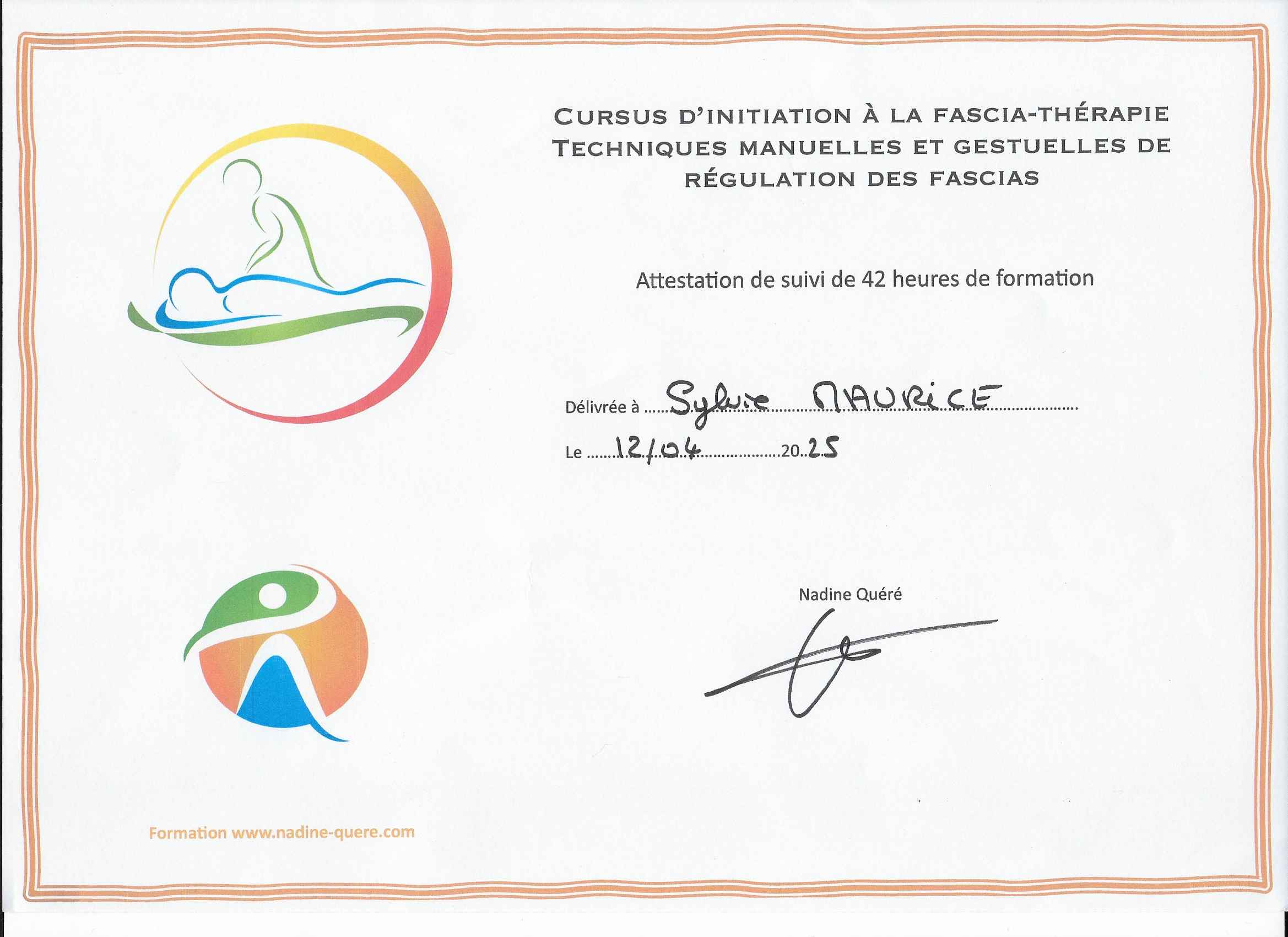 2004, je suis titulaire d'un certificat de relaxologue, passé au CEFER de Nancy,